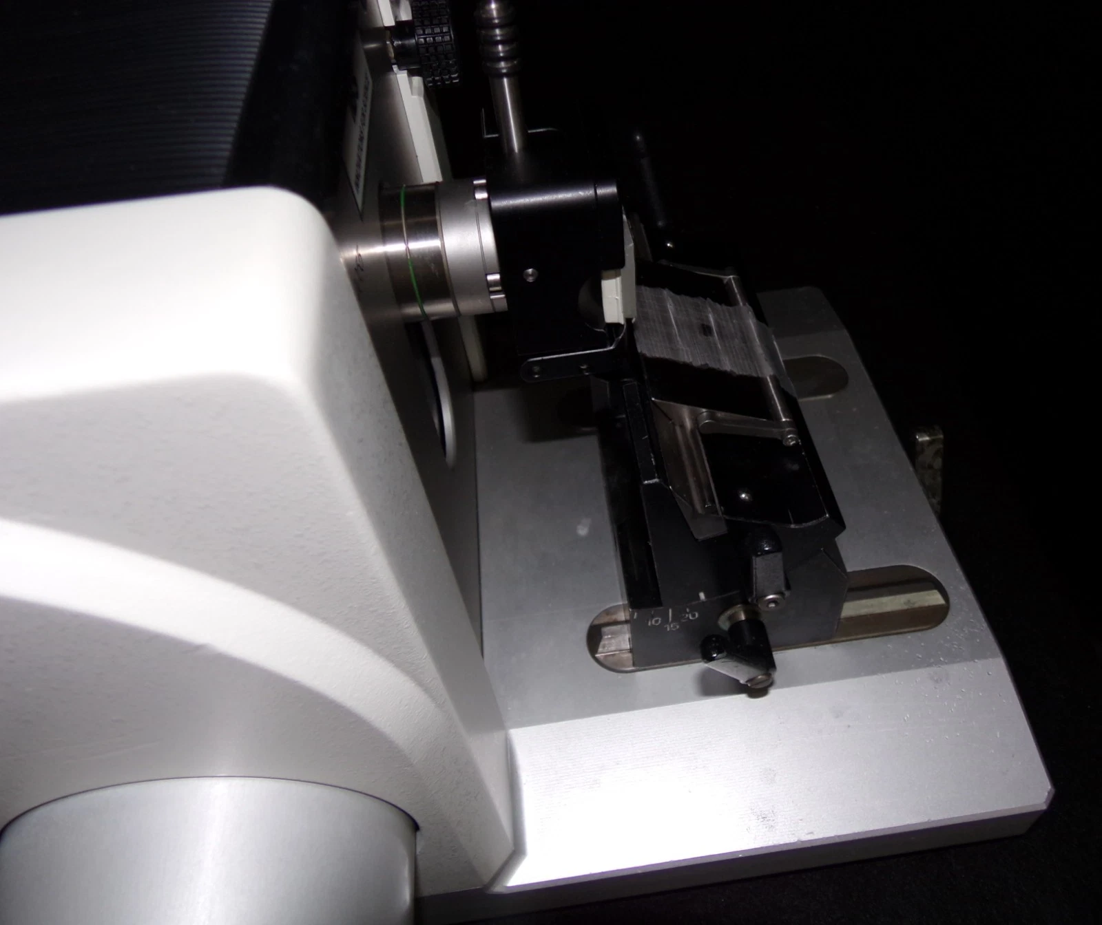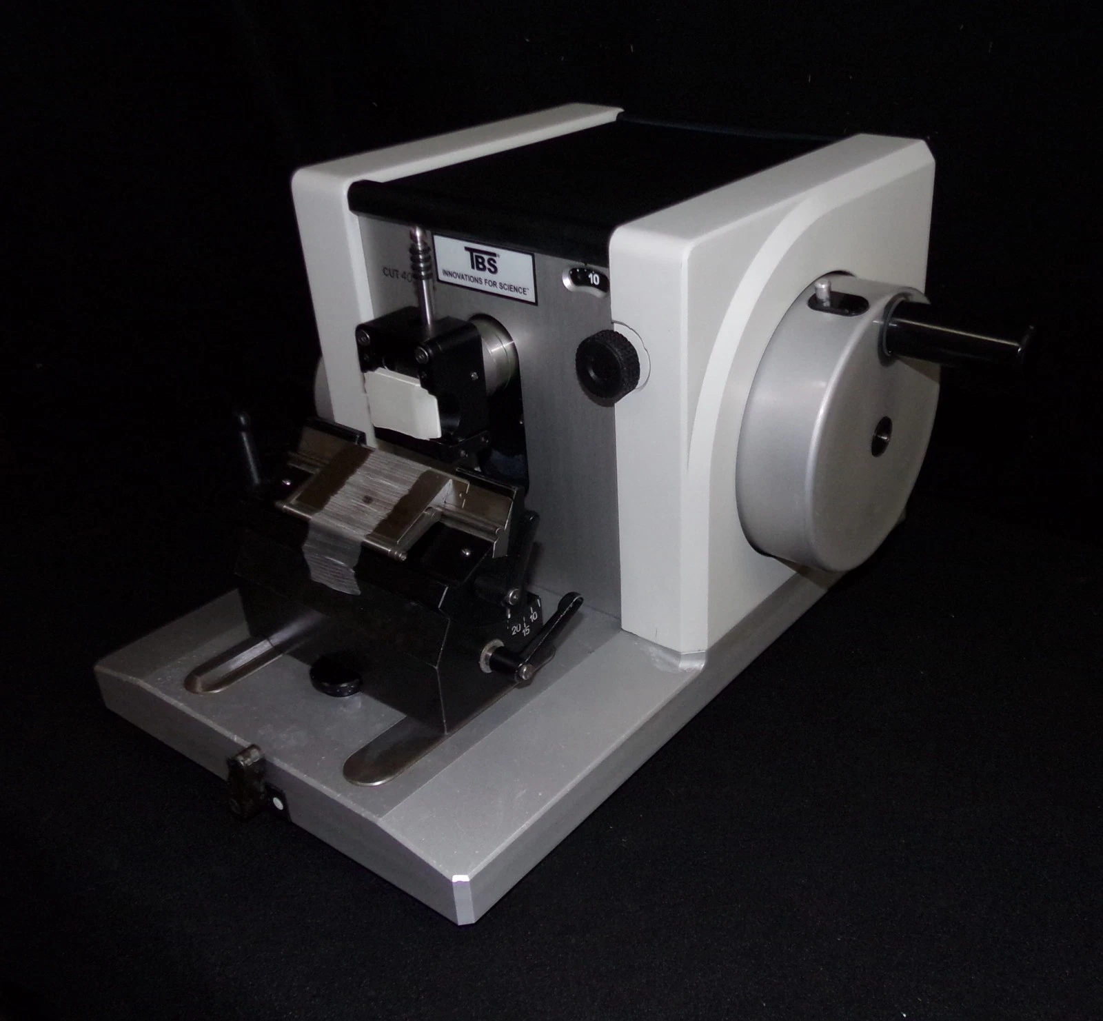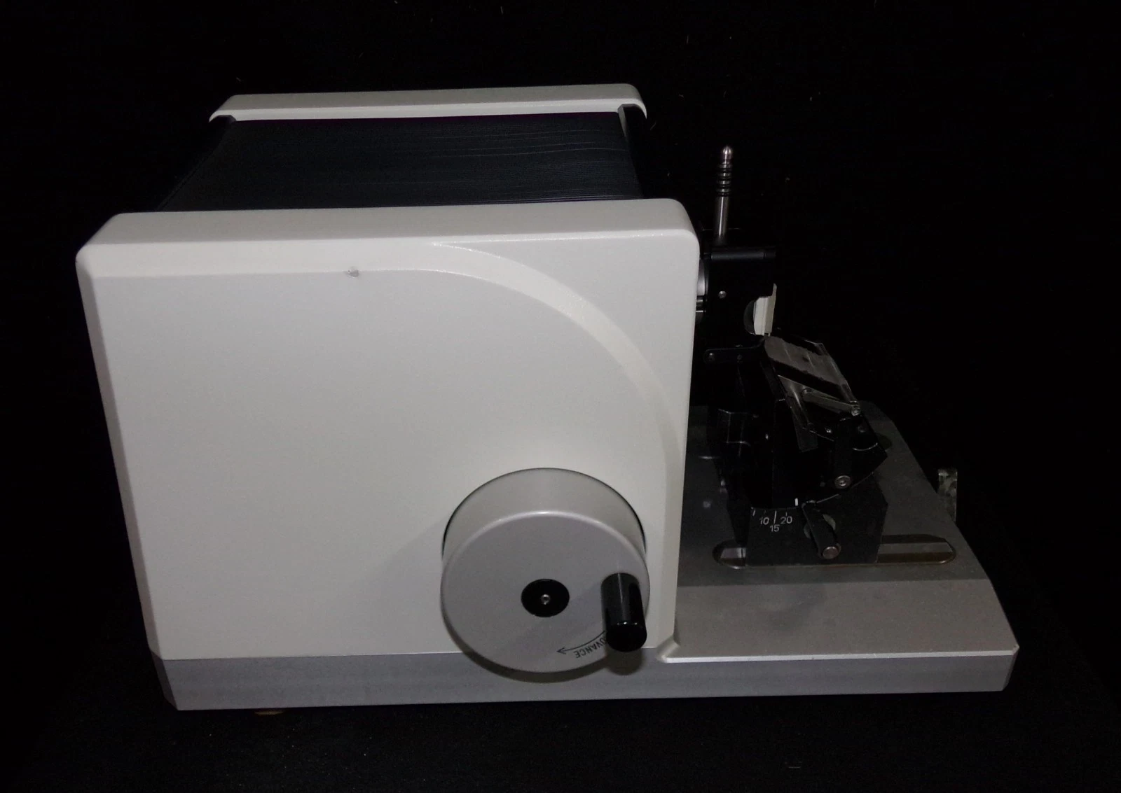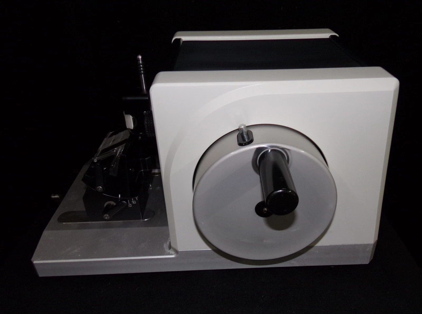 This microtome is in superb condition. Our Biomedical Engineering Department went over it from top to bottom and it is now in perfect working order. We disassembled it, cleaned it, lubricated it and then reassembled it, tested and calibrated it. We then touched up some minor scratches and now it looks as good as it performs.