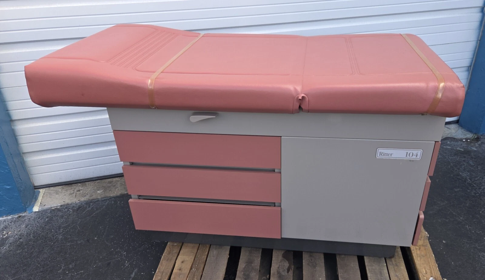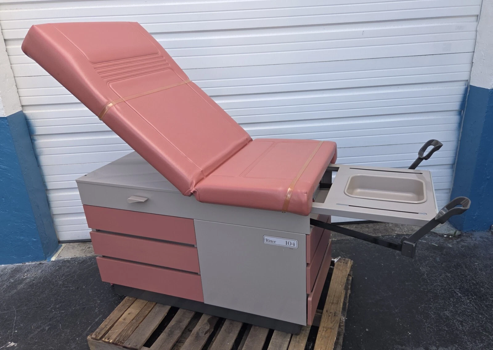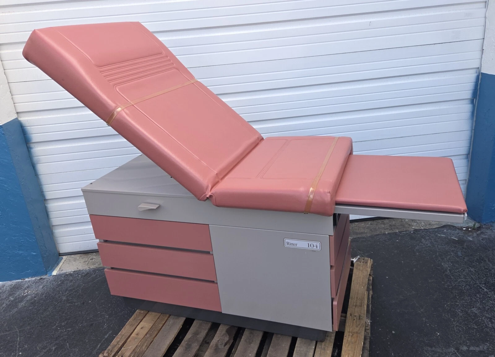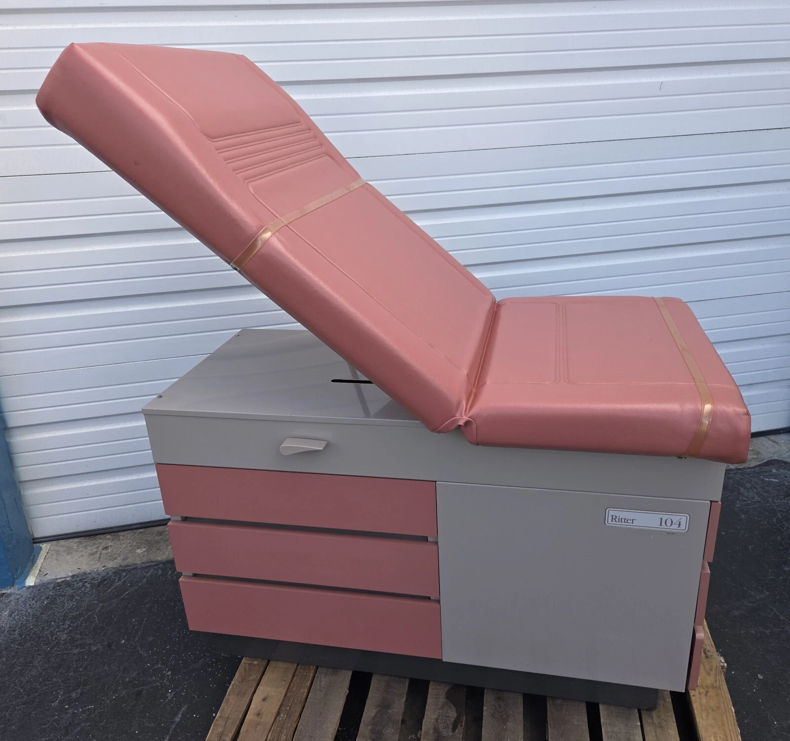 RITTER MODEL 104 MEDICAL/GYNECOLOGICAL EXAMINATION TABLE. This examination table is in excellent condition. Our Biomedical Engineering Department went over it from top to bottom and it is in 100% working order. This a sturdy, high quality examination table that was made here in the USA by a premier examination table manufacturer.
